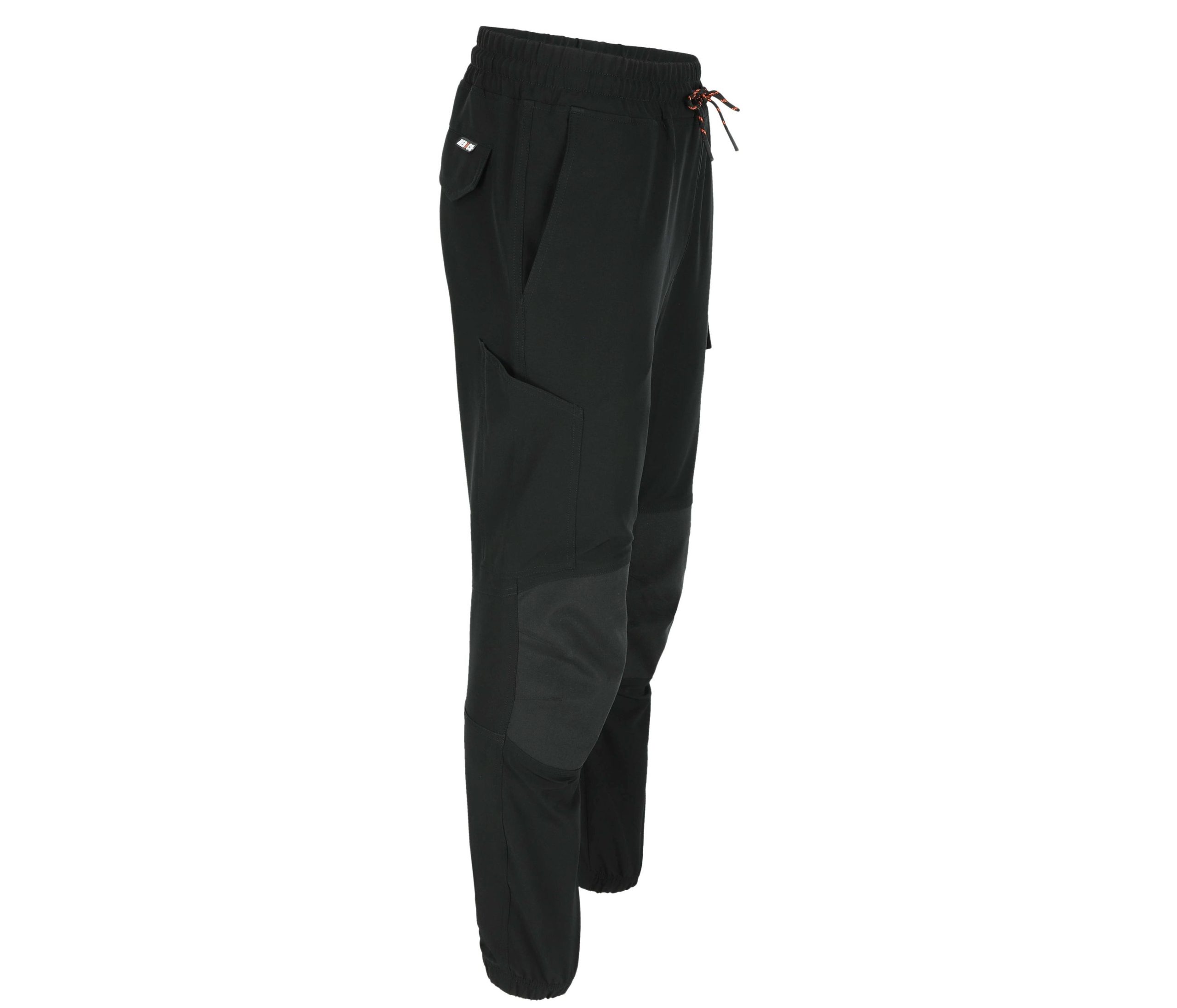 Stretch dans les 4 sens. Ceinture avec élastique et cordon de serrage. 2 poches latérales. 1 poche cuisse avec fermeture éclair. 1 poche cuisse avec rabat. 1 petite poche sur la poche cuisse.