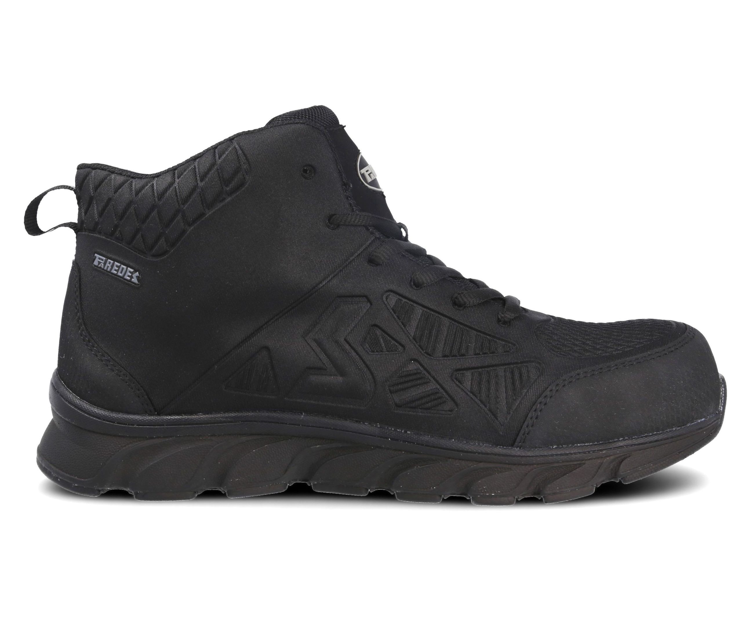 Chaussures hautes de sécurité avec embout COMPACT® non métallique, résistant aux impacts >200 joules. Semelle en EVA et caoutchouc nitrile antidérapante SRC. Semelle COMPACT® non métallique,