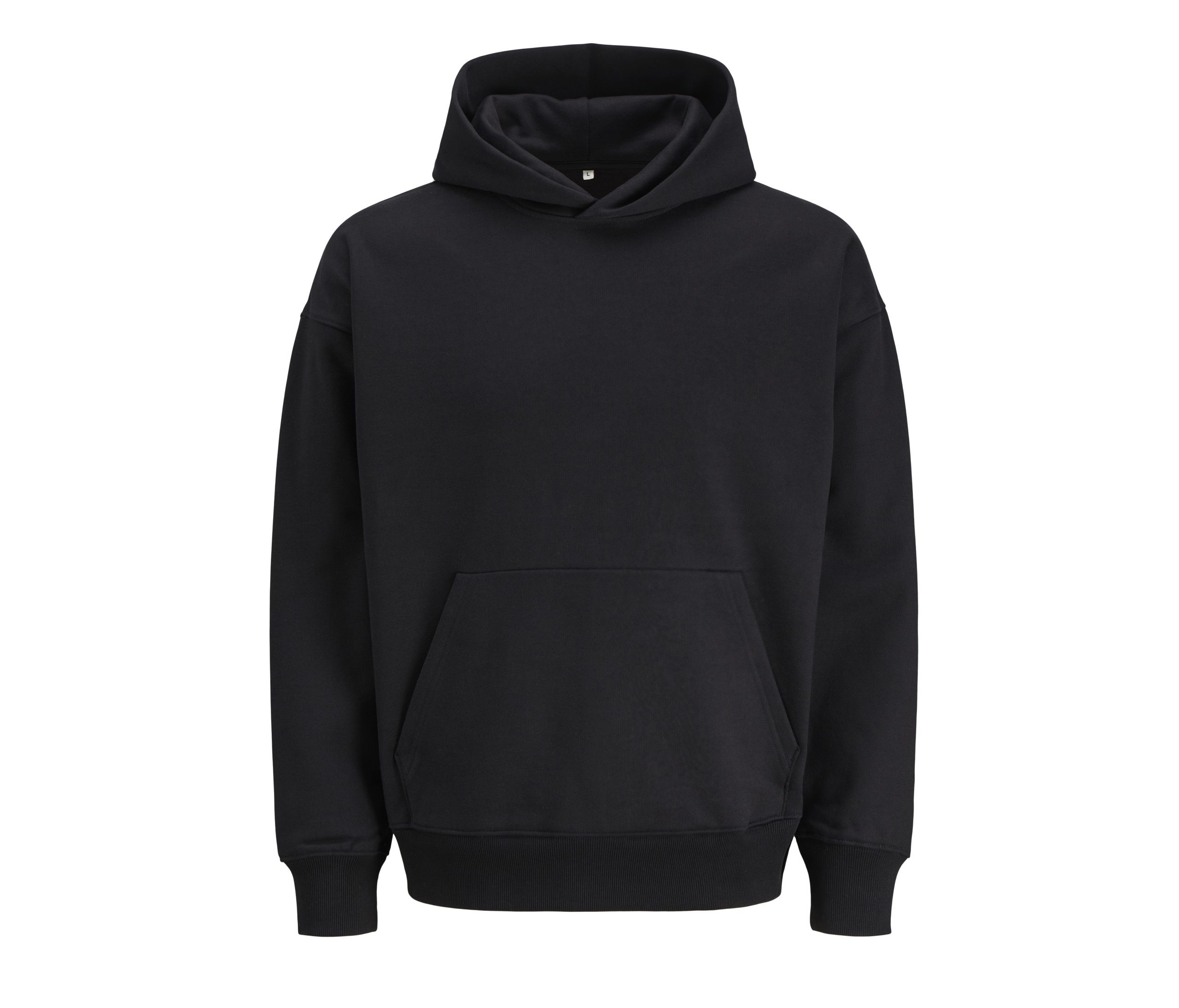 Intérieur brossé. Poche kangourou. Bords côte de 7cm à la taille et aux manches. Capuche sans cordon de serrage. Coupe décontractée avec épaules tombantes.