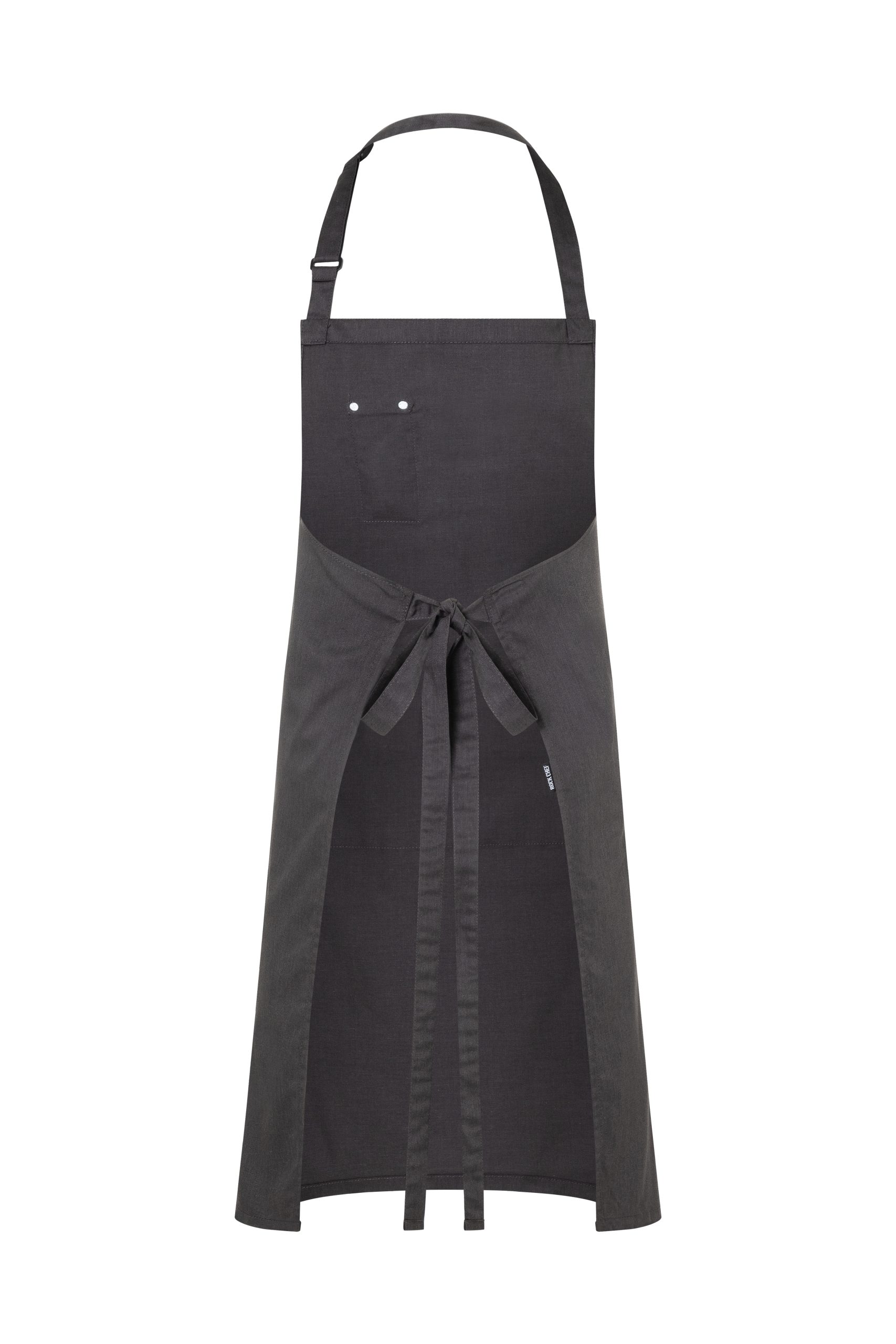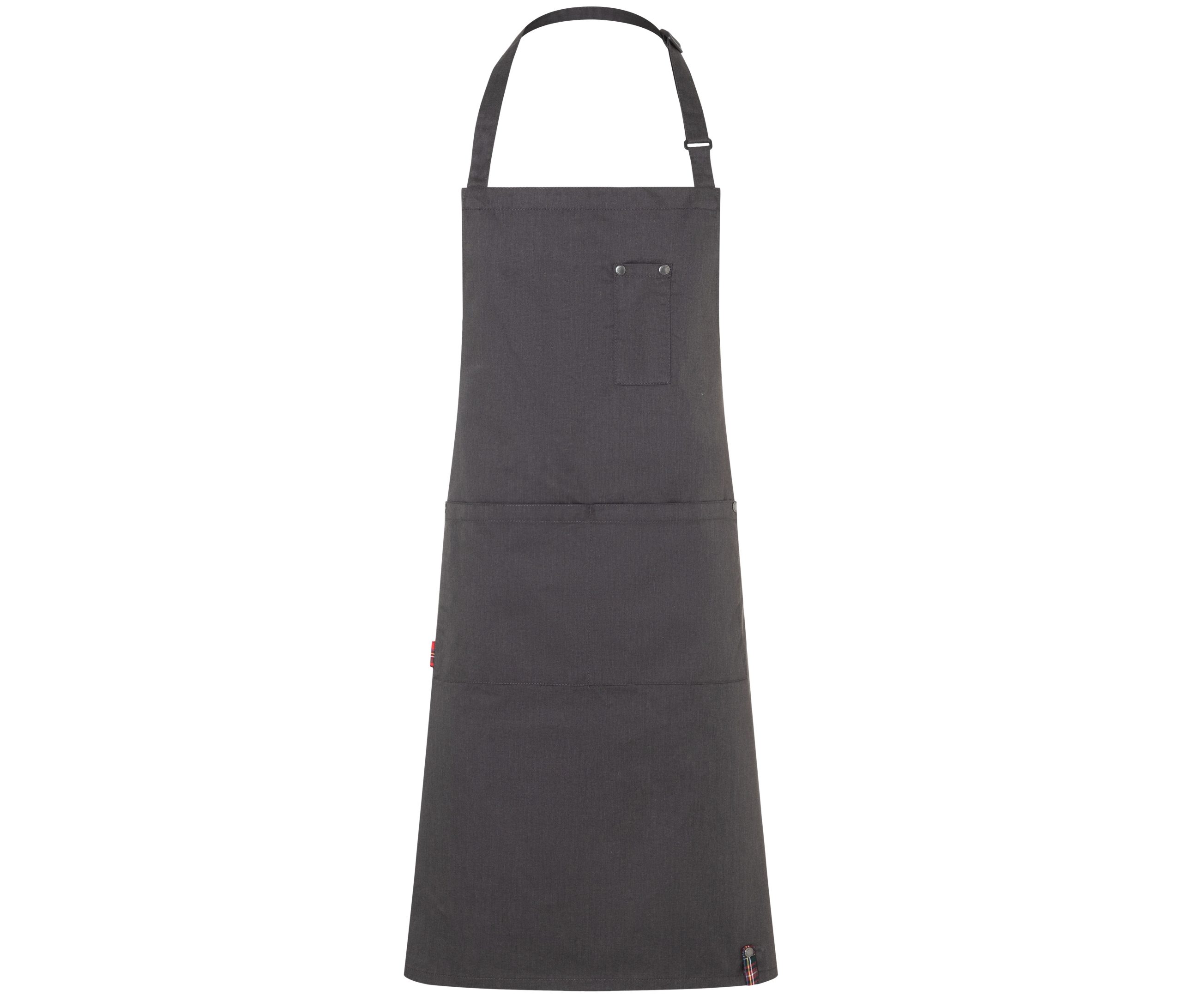 Rivets en relief Rock Chef® sur la poitrine et les poches avant. Sangle réglable avec boucle. 2 grandes poches avant. Poche poitrine élégante. Lavable jusqu’à 60°.