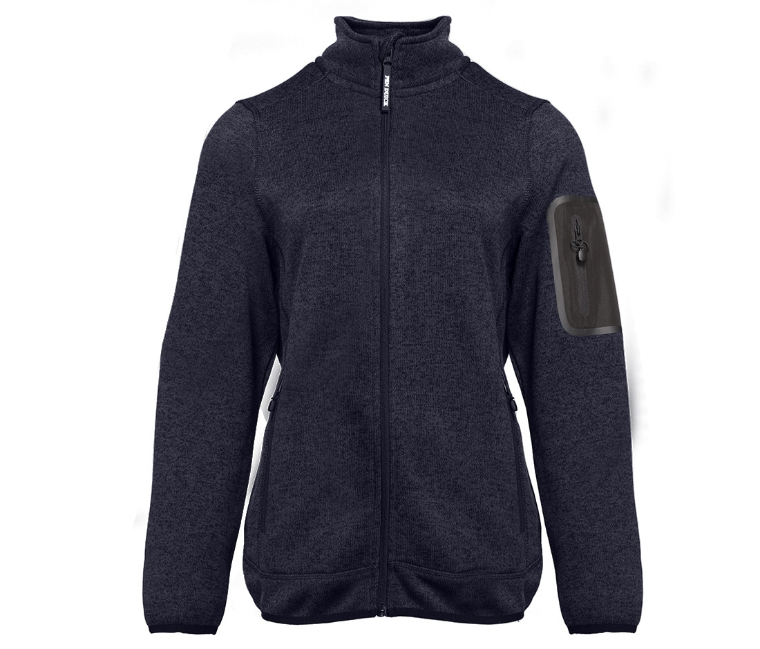 Polaire tricotée femme 300 g/m². Poche zippée sur le bras. 2 poches zippées.