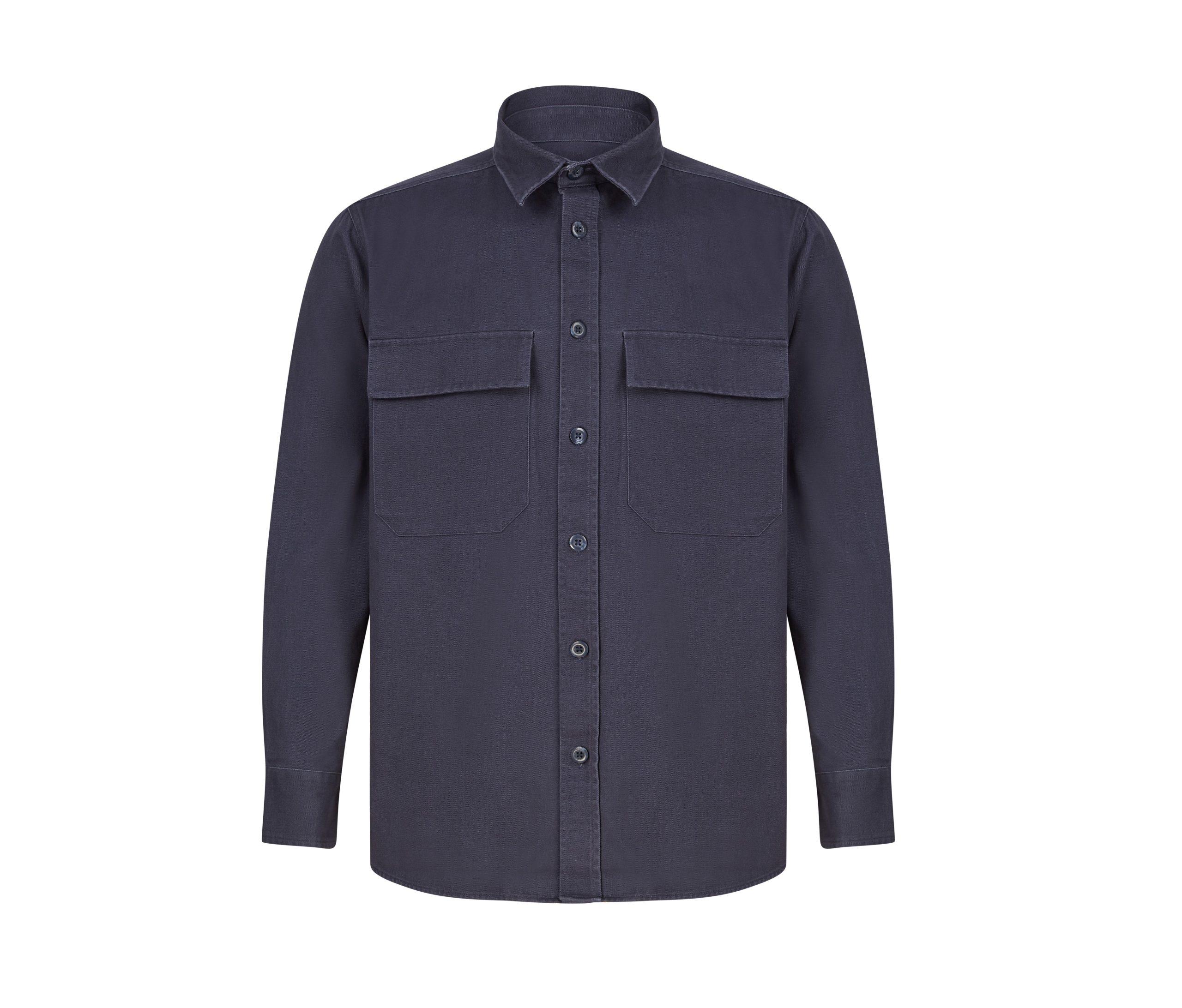 Boutons en plastique effet corne. Poches plaquées avec rabat. Poignets et patte de boutonnage avec fermeture par bouton.