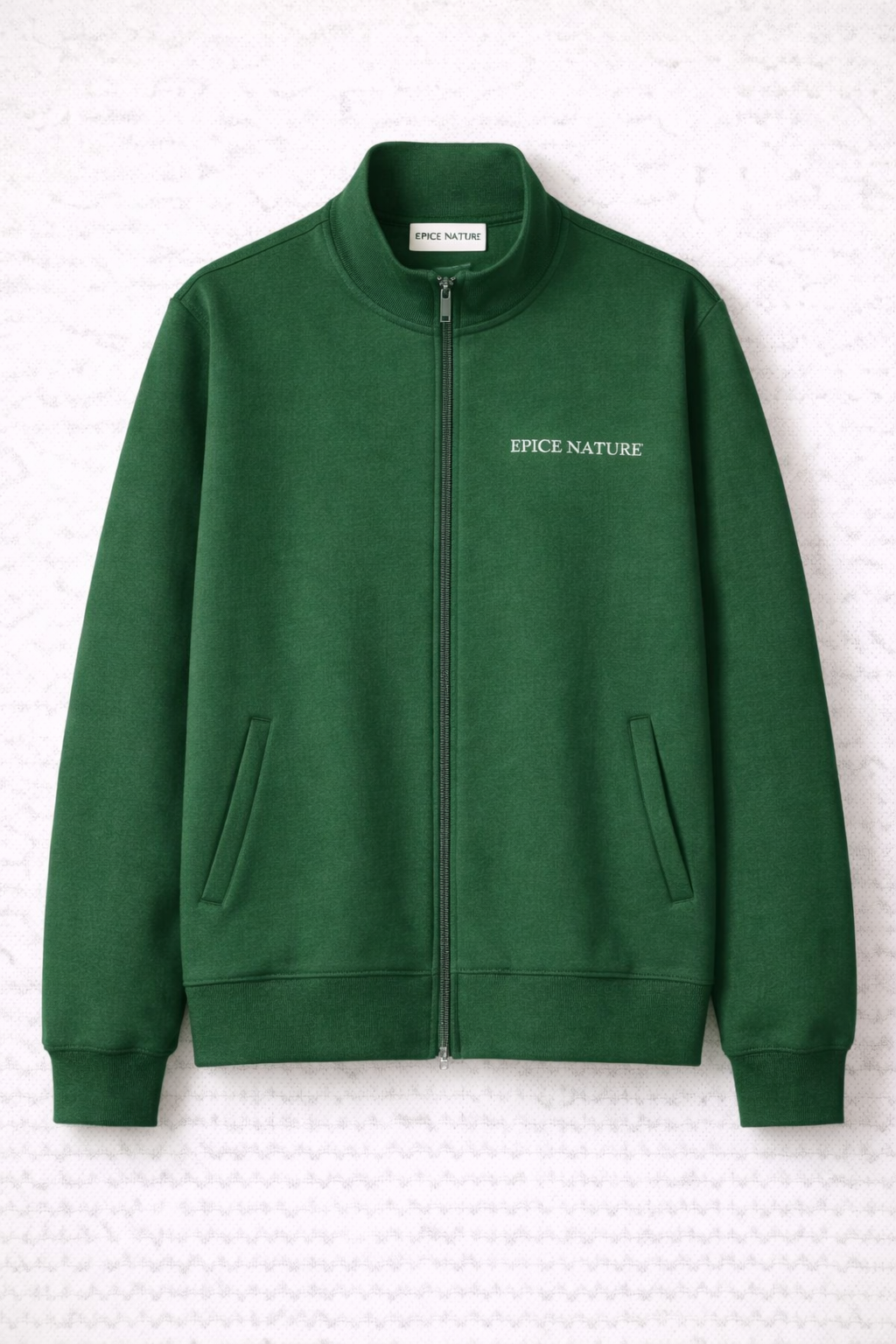 Veste zippée confectionnée en coton premium épais, pensée comme une pièce centrale du vestiaire sport-luxe EPICE NATURE.