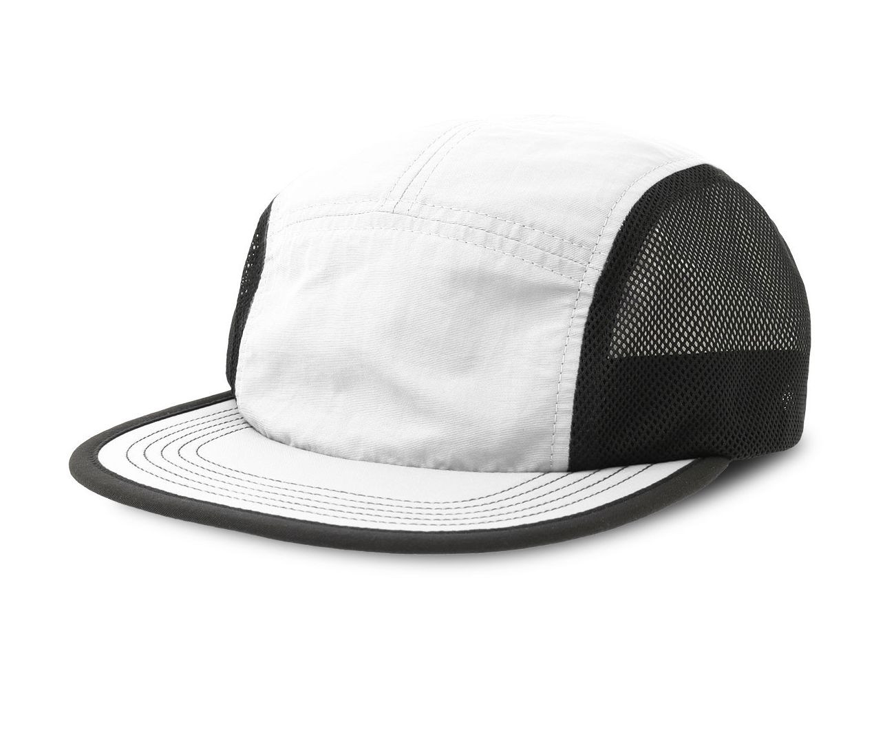 5 panneaux. Fermeture par picots en PVC. Visière plate. Panneaux latéraux perforés. Bandeau anti-transpiration. Tour de tête : 58cm. Structure de la visière en plastique.