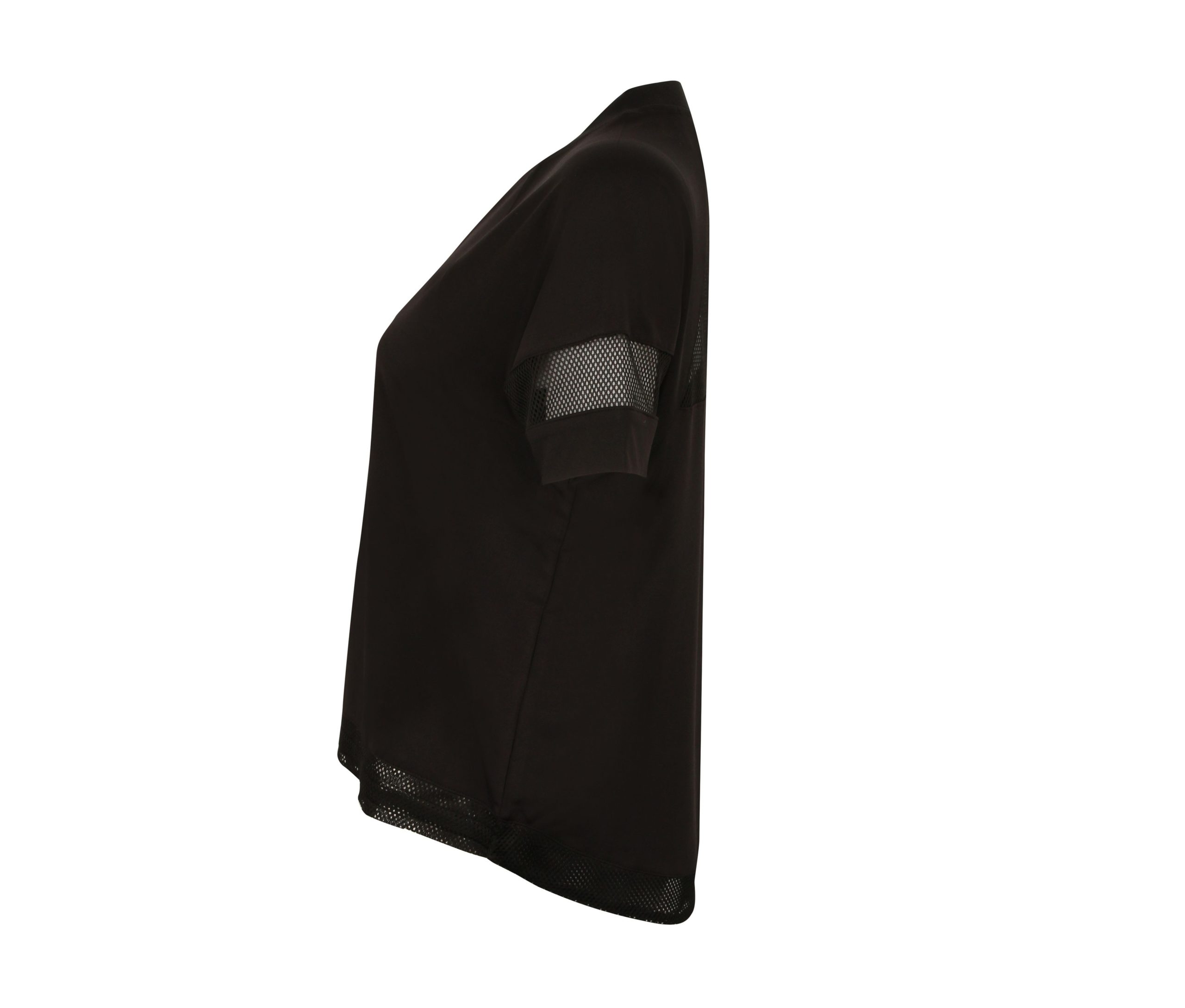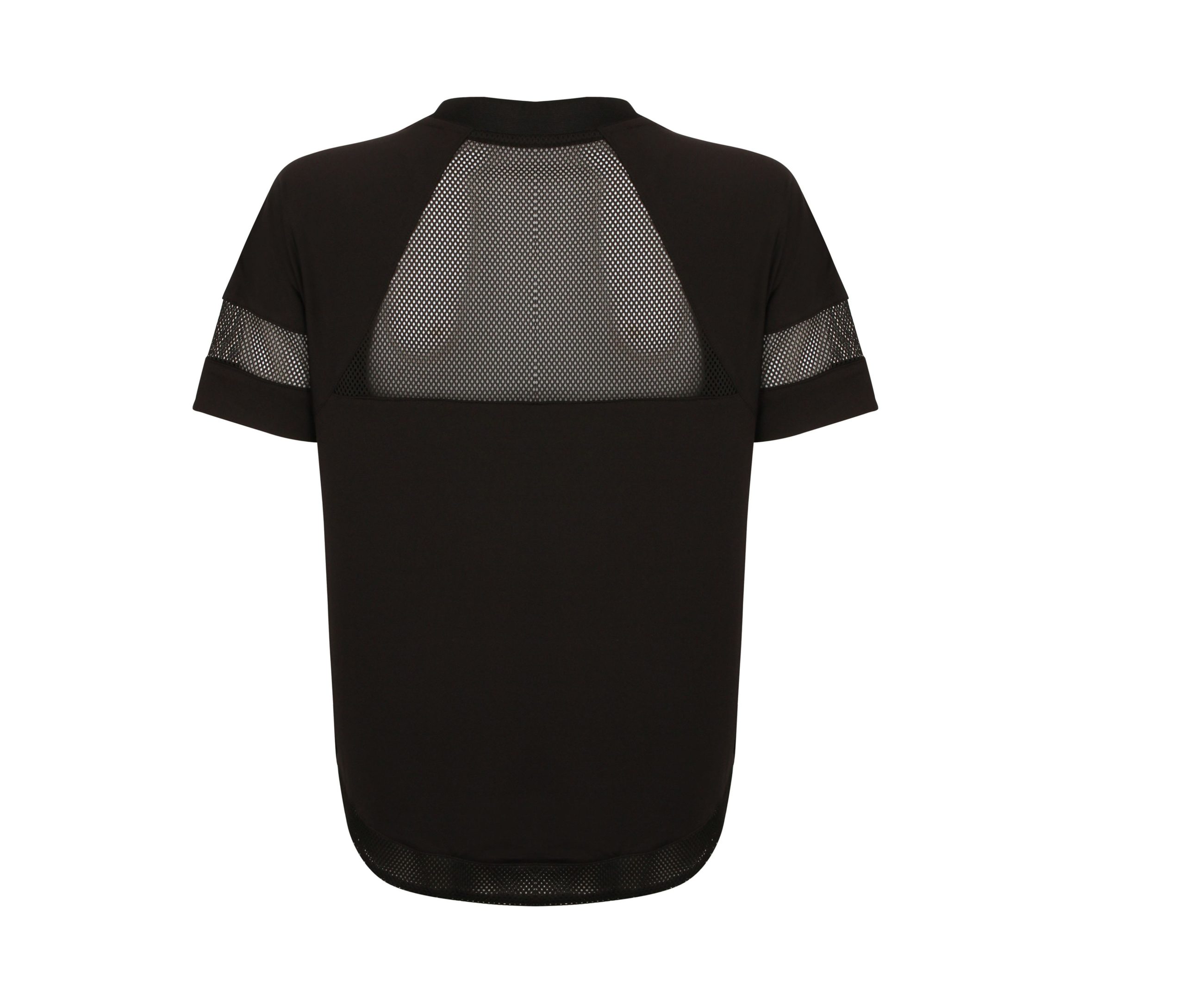 Cordon à la taille. Empiècements filet dos et manches. Col en bords côte. Étiquette détachable.
