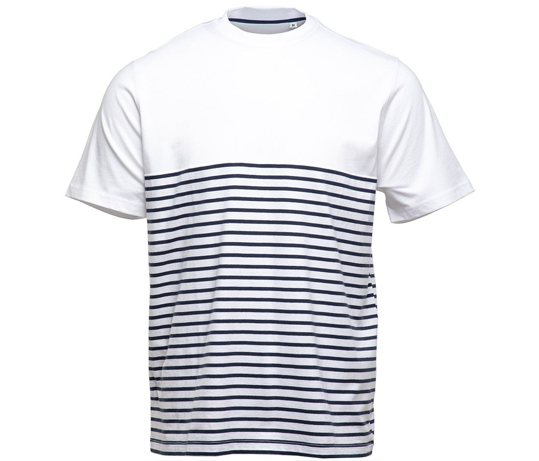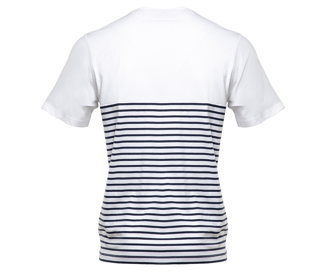 Manches courtes et droites. Rayures commençant à 20 cm du col. Col avec élasthanne.