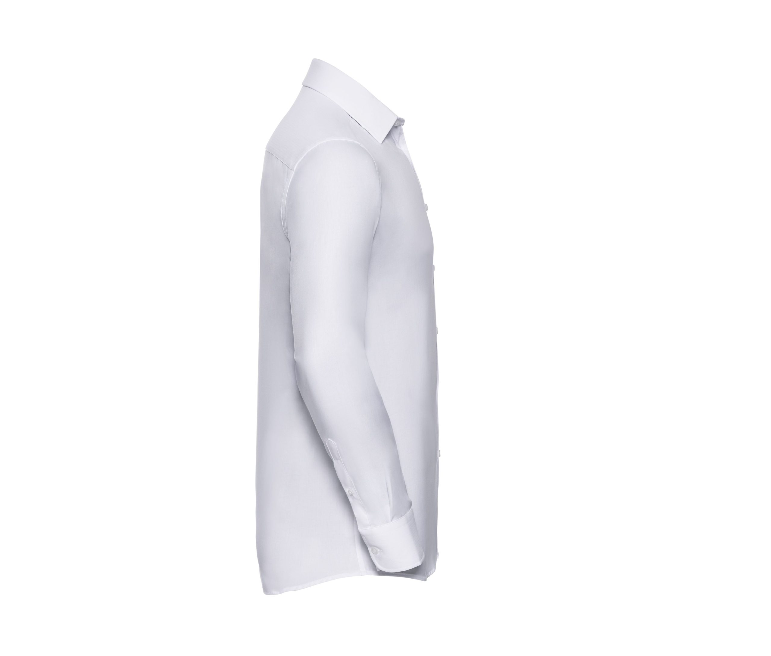 Chemise manches longues. Entretien facile. Sans transparence. Coupe cintrée. Manchettes arrondies. Rabat court, col semi-évasé. Sans poche. Option boutons de manchette.
