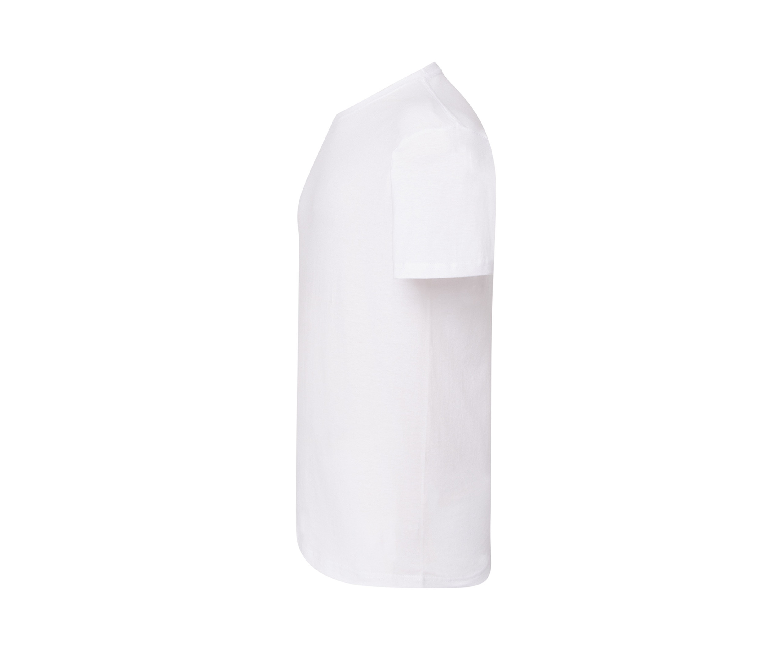 Coupe tubulaire. Double surpiqûre aux épaules et à la taille. Bande de propreté au cou et aux épaules. Col avec bord côte élasthanne.