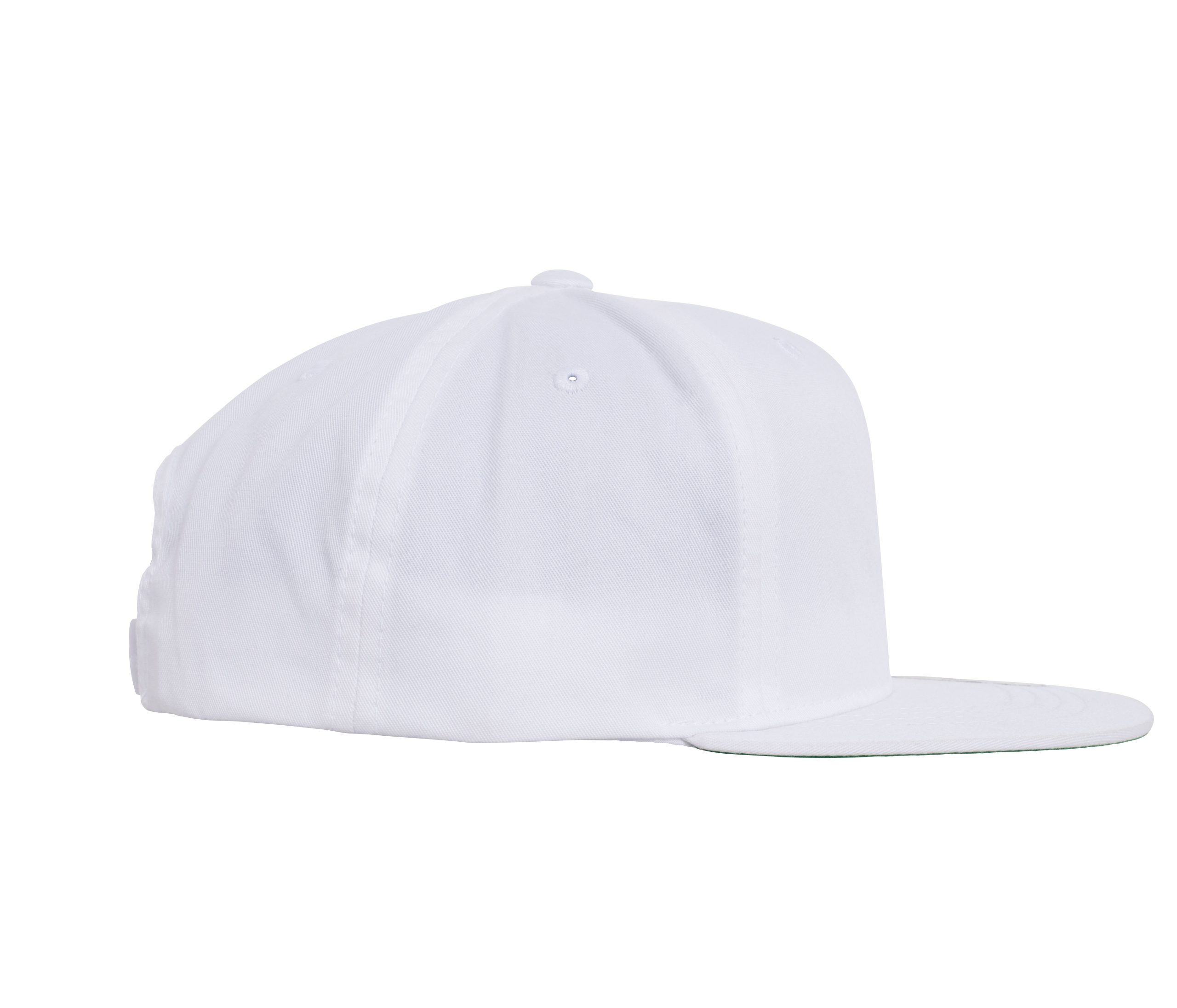 6 panneaux. Visière plate. 4 coutures sur la visière. Œillets cousus. Panneaux avant structurés. Fermeture par patte.