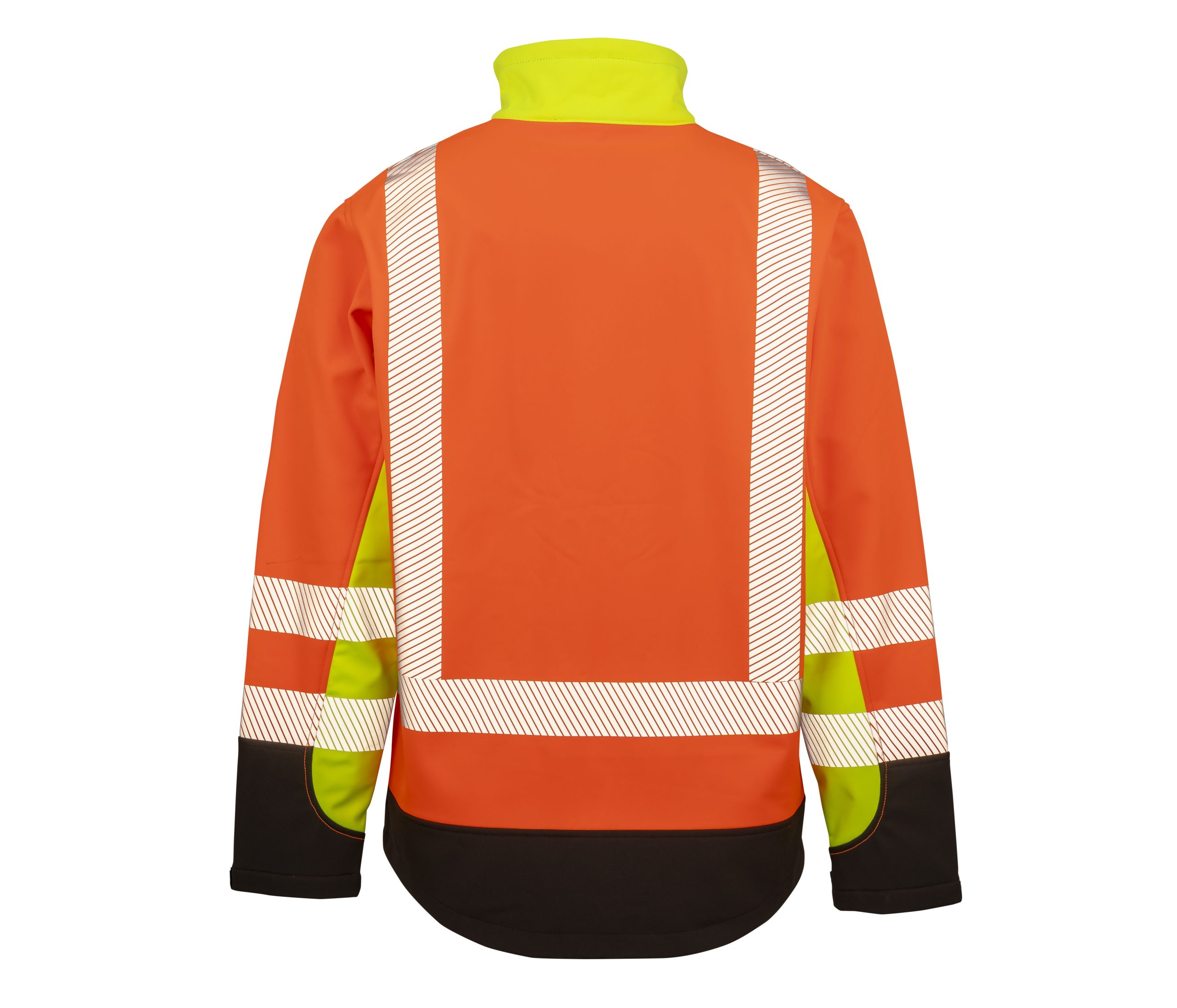 Bandes réfléchissantes imprimées. Rallongé dans le dos. Imperméabilité 8000m. Respirabilité 1000g. Certifié EN ISO 20471:2013+A1:2016 Classe 2. 20 bouteilles en plastique (1L) recyclées par produit.