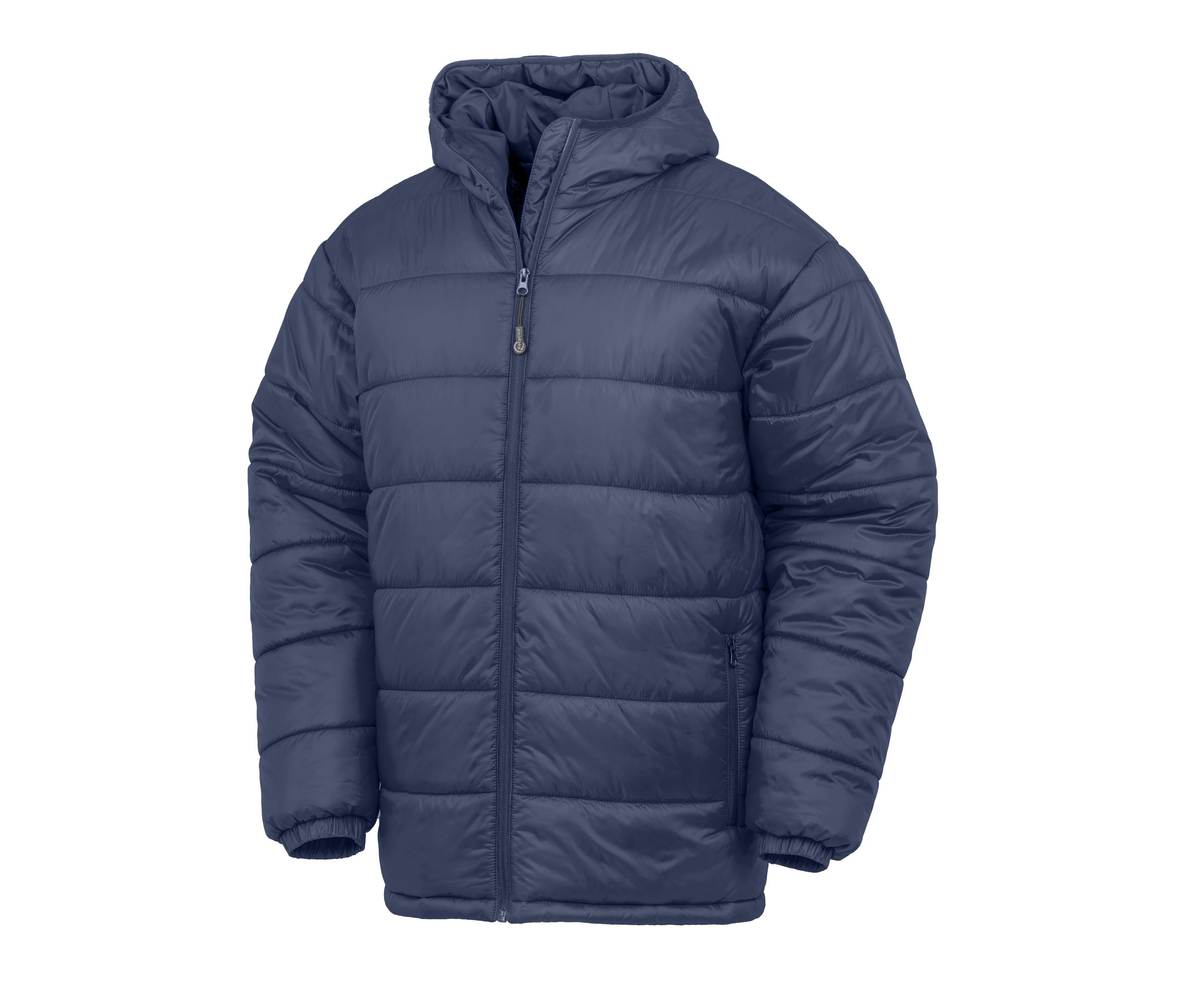 Capuche rembourrée et élastiquée. Fermeture zippée à l’avant avec tirette. Poches zippées. Coupe plus longue. 22 bouteilles plastiques recyclées par produit.