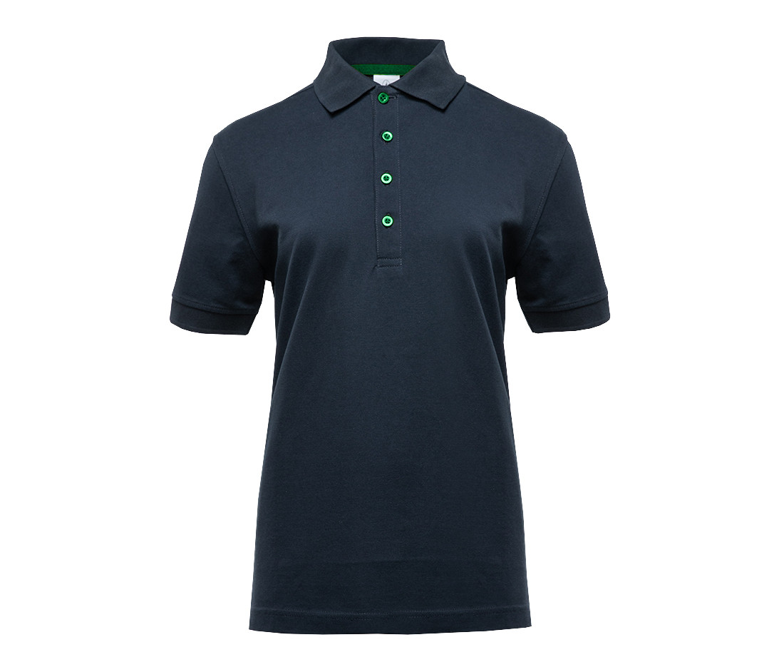 Bande de propreté contrastée au col. Bord côte aux manches et col. Plaquette 4 boutons.