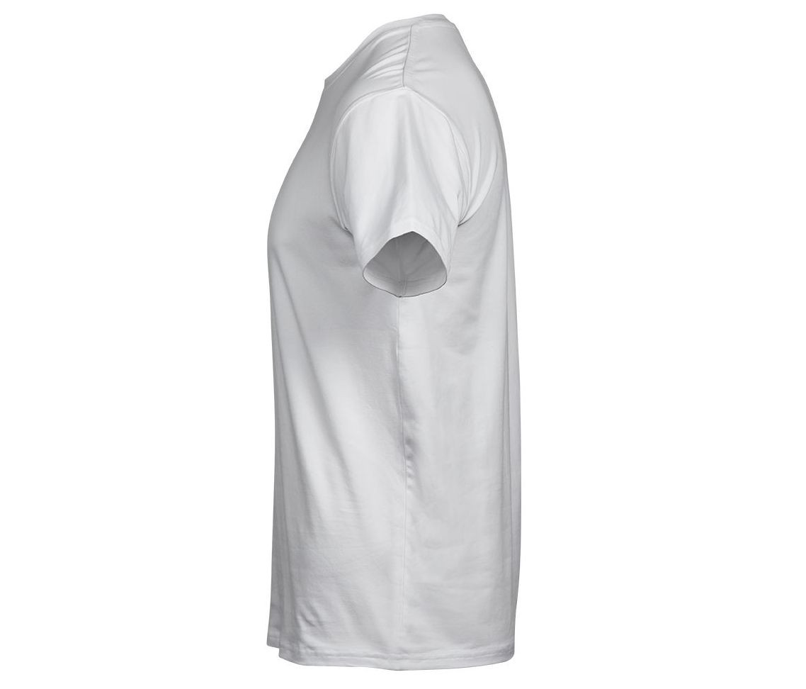 Coupe classique. Col en bords côte doublé. Double couture. Lavé aux enzymes. Pré-rétréci.