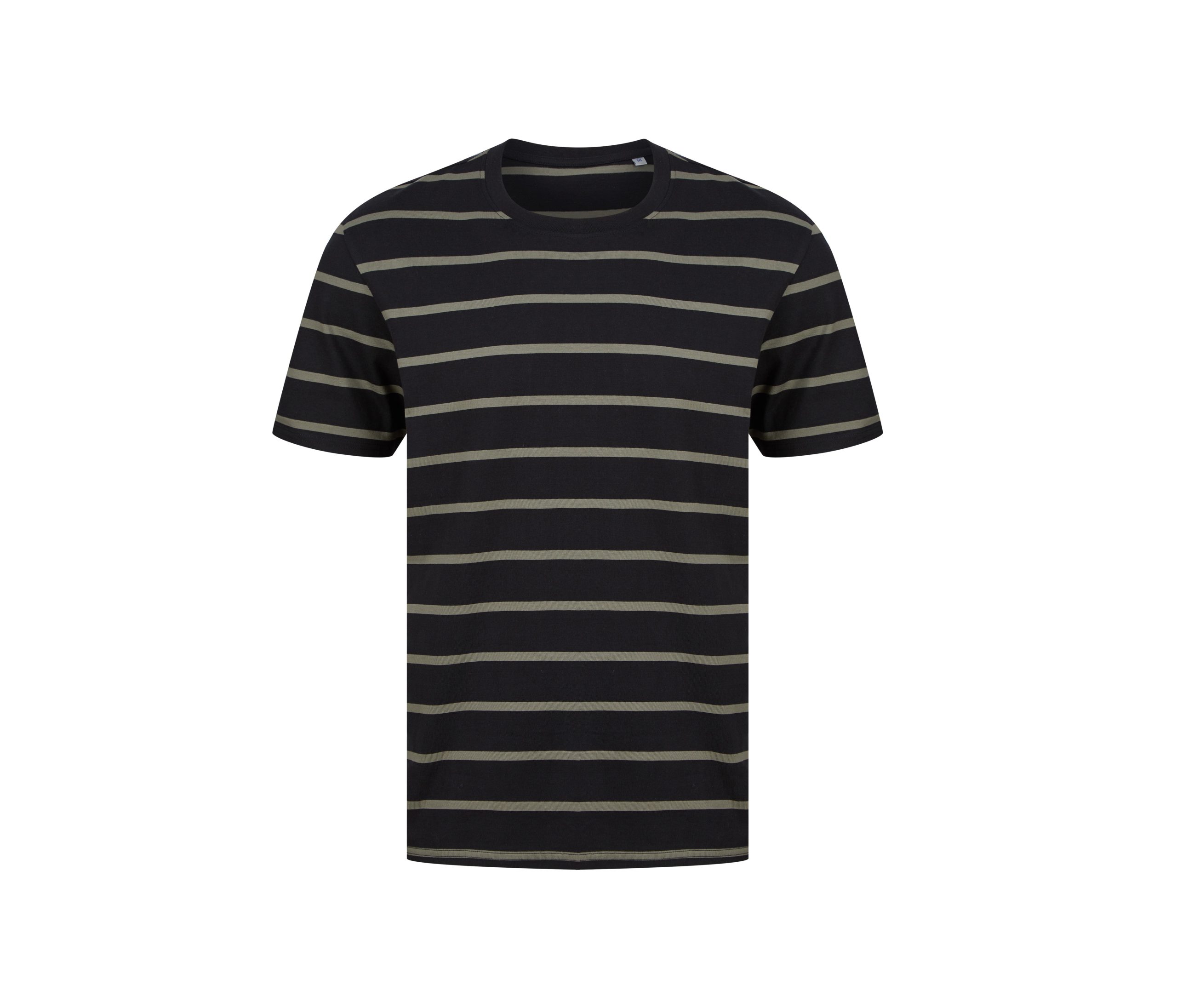 T-shirt rayé lourd. Coupe décontractée. Col en bords côte stretch unicolore. Double coutures aux manches et à la taille. Sans étiquette de marque.