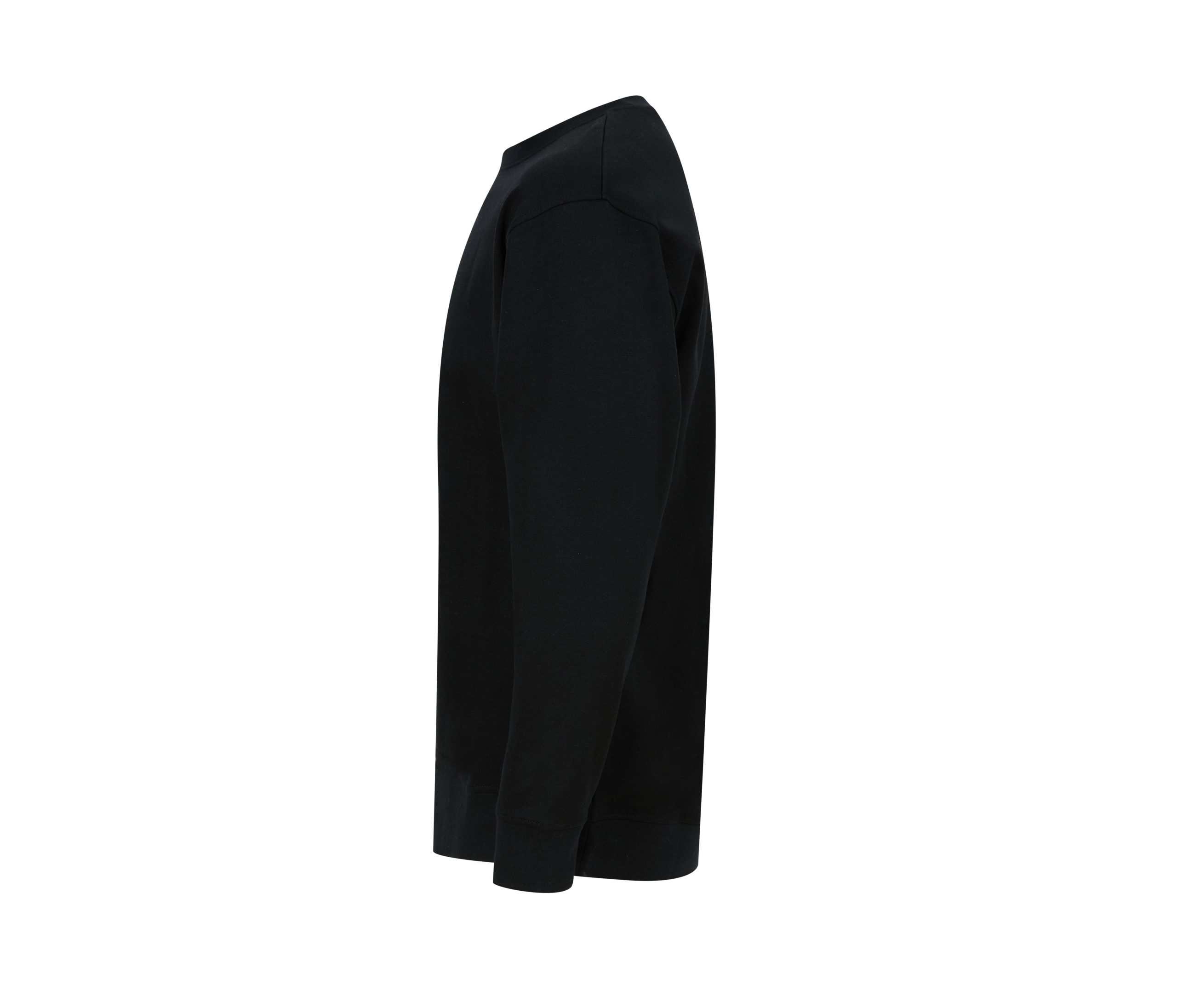 Sweatshirt unisexe à la coupe décontractée. Manches droites. Épaules tombantes. Sweat plus long au dos. Col rond et poignets en bords côte. Surpiqûres ton sur ton. Sans étiquette de marque. B