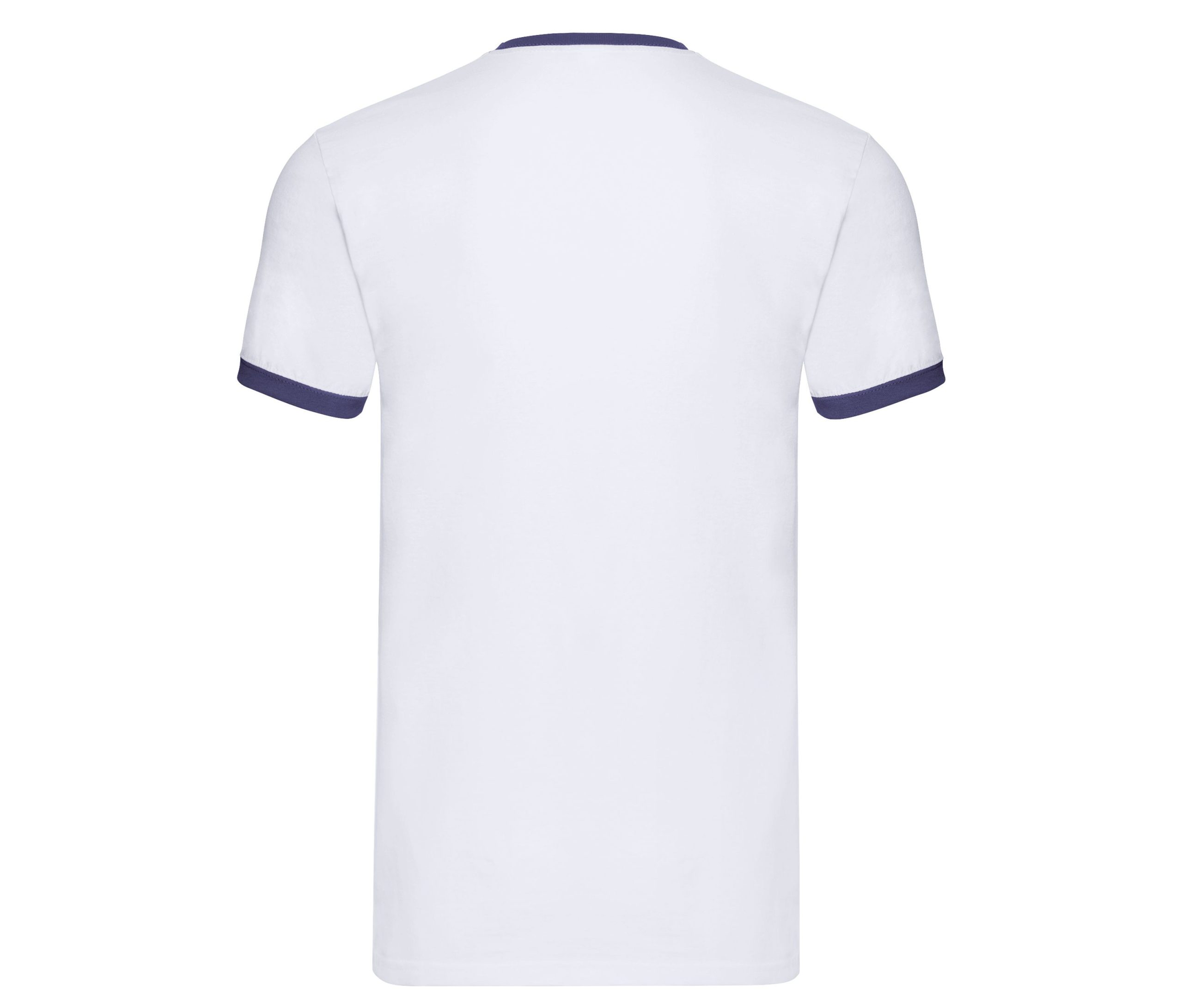 Col rond de couleur contrasté en bord côte coton/Lycra®. Bande de propreté de même tissu au revers du col. Maille et jauge plus fines pour une impression à haute résolution.