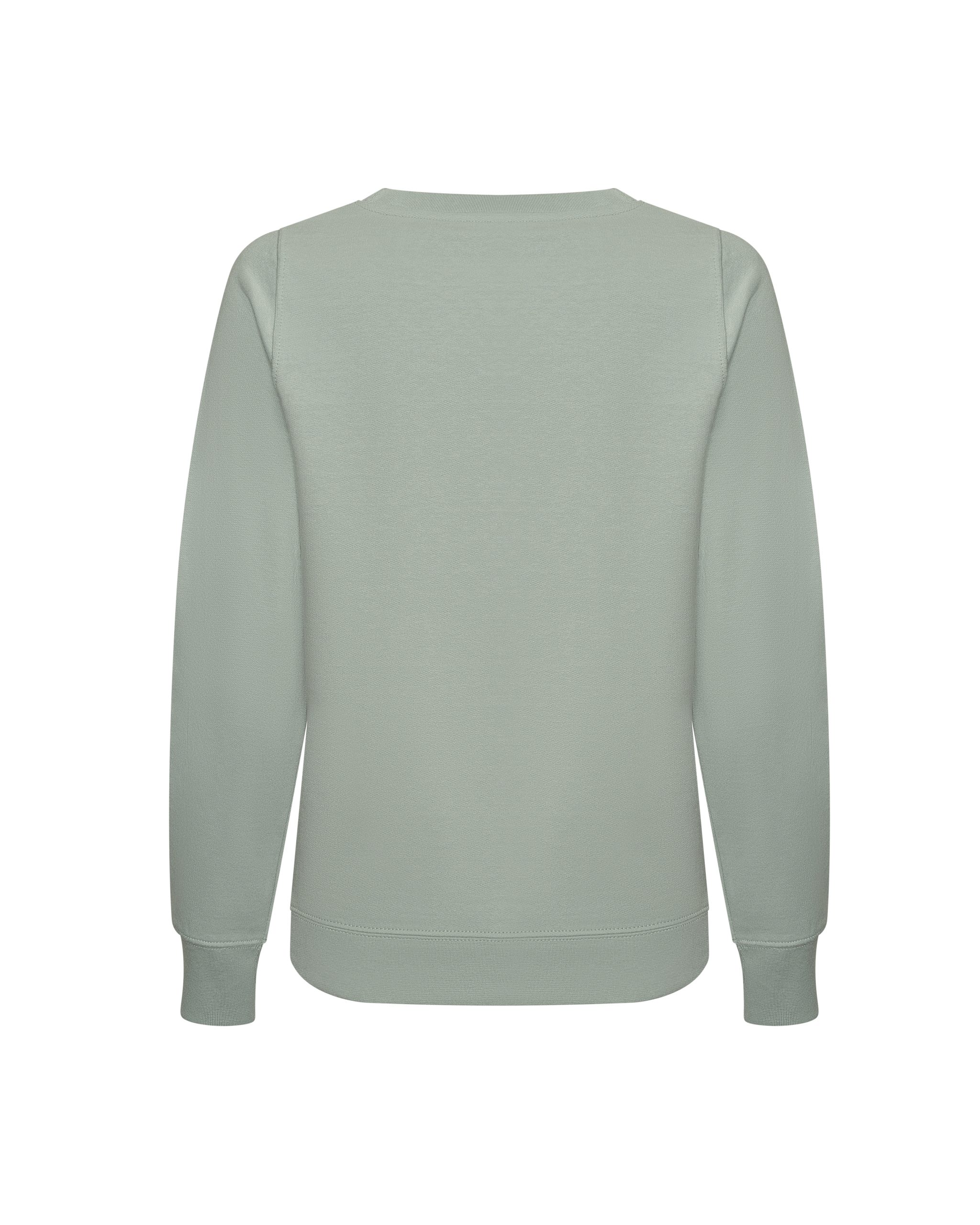 Coupe féminine classique. Col rond. Double surpiqûre. Intérieur brossé. Poignets et taille en bords côte.